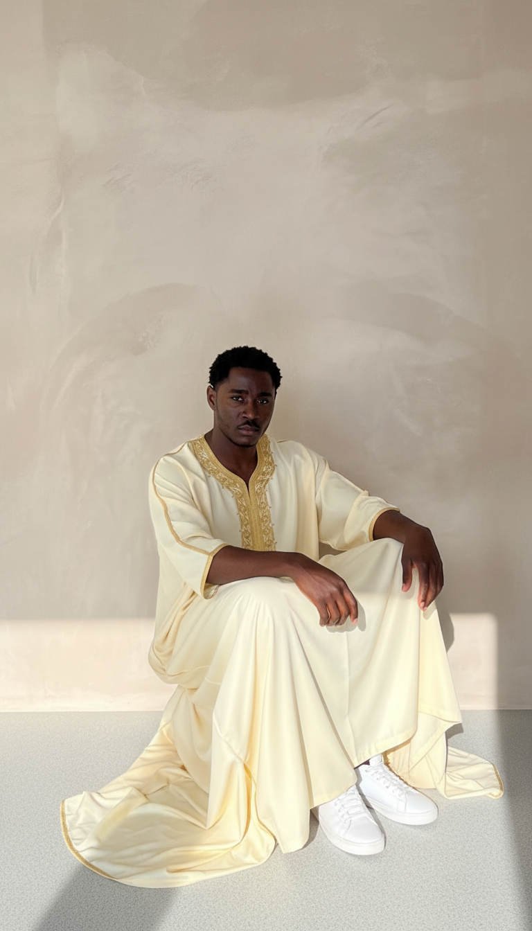 The Moroccan thobe has been the cornerstone of modest dress for generations. This version carries that tradition forward with natural cotton that breathes. The embroidered neckline adds refined detail without excess. Designed to move with you—whether you're heading out or staying in.