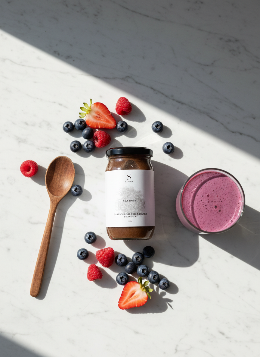 Sea moss gel with dark chocolate and honey—rich, satisfying, and packed with minerals. The same immune and digestive support in a flavor you'll crave. Take straight or add to smoothies. Natural, wildcrafted, indulgent.