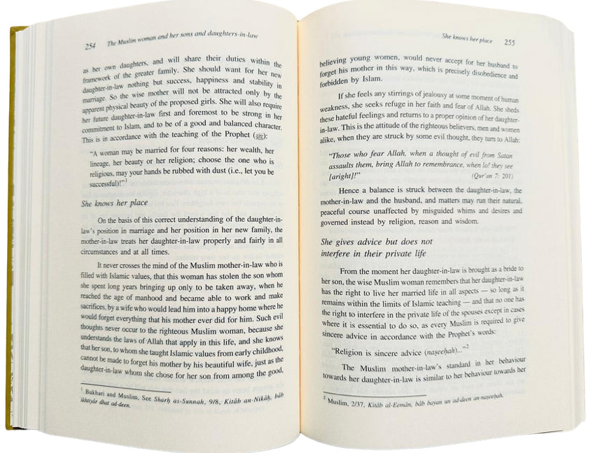 The Ideal Muslimah is proud of the great position that Islam has given her among humanity. She performs her duties knowing that her role is clearly defined and that her rights are still, even today, greater than what any other ideology has provided. She is a woman of moral excellence, true to her nature, not confused by alien and morally bankrupt ideas. She preserves her self-respect and dignity through her piety in obedience to ALLAH and his Messenger صلی الله علیه وآلهِ وسلم. She is the role model that every true believer hopes to emulate. This comprehensive Work by Dr, Al. Hashimi is a valuable contribution to our English readers who will find the knowledge contained therein truly beneficial and inspiring.